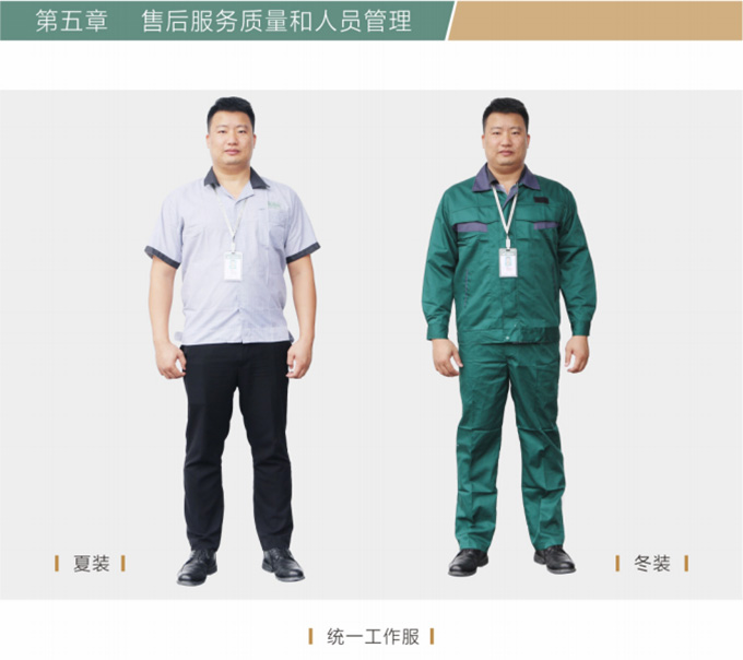維修人員上門維修處理問題上門前必須著我們統一工作服,佩戴上崗證并盡量攜帶維修處理過程中可能會使用到的工具和備用配件例:工具、備件、筆記本、手套、腳套、收據和《我們售后服務信息單》等物品。